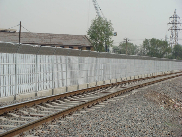鐵路聲屏障由鋼結(jié)構(gòu)立柱和吸隔聲屏板兩部分組成,立柱是聲屏障的主要受力構(gòu)件,它通過(guò)螺栓或焊接固定在道路防撞墻或軌道邊的預(yù)埋鋼板上;吸隔聲板是主要的隔聲吸聲構(gòu)件,它通過(guò)高強(qiáng)彈簧卡子將其固定在H型立柱槽內(nèi),形成聲屏障。聲屏障的設(shè)計(jì)已較為充分地考慮了高架高速道路、城市輕軌、地鐵的風(fēng)載、交通車輛的撞擊安全和全天候的露天防腐問(wèn)題。它外形美觀大方,制作精致,運(yùn)輸、安裝方便,造價(jià)低,使用壽命長(zhǎng),特別適用于高架高速道路和城市輕軌、地鐵的防噪聲使用,是現(xiàn)代化城市理想的隔聲降噪設(shè)施。